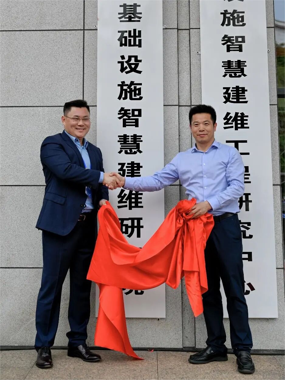 徐长节、王翔宇共同为江西省土木基础设施智慧建维工程研究中心和学校土木基础设施智慧建维研究院揭牌