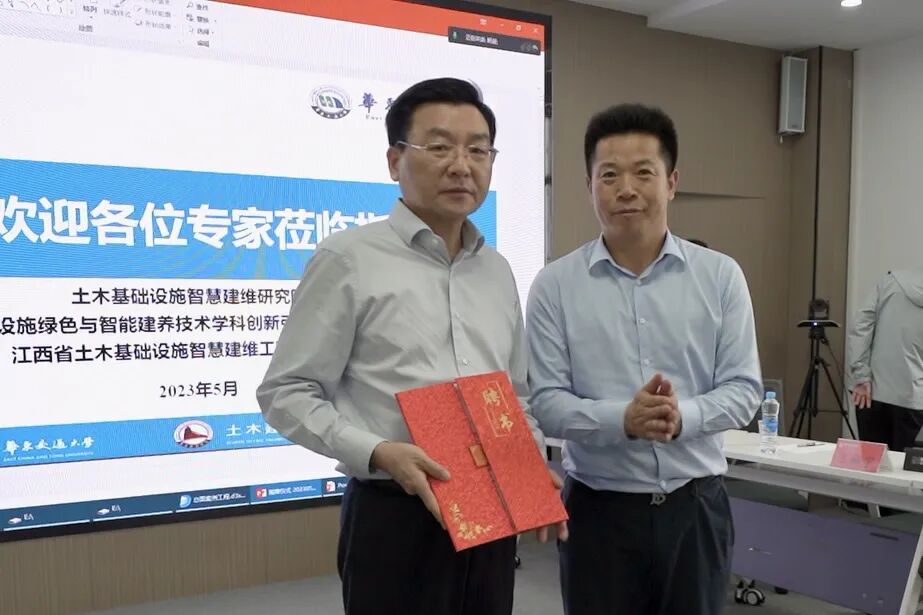 徐长节、陈炜蓉共 同为“111基地”揭牌。徐长节与工程研究中心主任、研究院执行院长王翔宇共同为江西省土木基础设施智慧建维工程研究中心和学校土木基础设施智慧建维研究院揭牌。